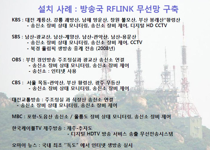 알에프링크 HD 무선영상 전송 네트워K!NG 디지털 TV 전환 DTV 방송자동화 시설 메인 예비 백업 인터넷 회선비용 절감 방송국 송신소 중계소 RFVISION